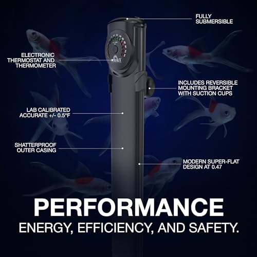 It has a slim profile and comes with a mounting bracket to easily secure in inside your tank. The screen appears easy to read and the color-changing technology lets you easily monitor the water temperature.